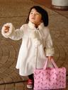 英語教室にはワークブックとパペット(人形)を持っていきます。今までは私(るいママ)が持って行っていたのですが、今日からは布製のバッグに入れて瑠衣自身で持って行きました。瑠衣が持つと大きく見えます。