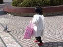 帰り道、「あっ!」と言ってじっと上を見ているので何かと思ったら、街灯に鳩がとまっていました。寒いのか全然動かない鳩を観察している様子を撮影しました。鳩は日向ぼっこをしていたようです。