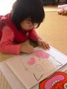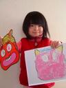 明日は節分です。鬼のお面を作ってみました。ダンボール紙の上にプリンター用紙を糊付けし、スーパーでもらった鬼のお面をお手本にして(輪郭を鉛筆で描き)作成しました。瑠衣は「ピンクがかわいいから・・・・」と言ってピンクの鬼を書きました。お手本があったとはいえ、なかなか上手く仕上がりました。
