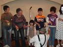 そのうちに、客の中から数人がバンドのメンバーによって舞台に連れて行かれました。私は瑠衣に「行ってみたら?」と少し背中を押すと、瑠衣は呼ばれてもいないのにさっさと舞台に登ってしまいました。そして、ベルを渡されて、「エーデルワイス」を演奏し、バンドのメンバーと一緒にダンスをしました。舞台に上がったほかのお客さんはと比べて瑠衣はとても小さかったのですが、人前で何かをすることを恥ずかしがらないので感心してしまいました。まだ、恥ずかしいという感覚がないのかもしれないですね。
