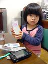 帰宅の幼稚園のバスから降りてくると、瑠衣は今日も何かを持っています。