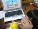 幼稚園に行く前に、旺文社の「まいにちがたからもの」(年少)6月号で遊んでいます。「おーちゃんのかさうり」というプログラムを「きゃきゃ」と声を出しながら遊んでいました。出発直前まで遊んでいました。