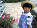 今日は、信号のタイミングがよく、他の園児が来る前に待合所についてしまったので、鉢植えの花と夏服の瑠衣を撮影しました。今のところ一日もまだ幼稚園を休んでいません。(結構、丈夫ですね。)
