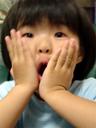 ところが瑠衣は食い入るようにテレビを視て、「わぁ~魔法使いだ!」「すごいねぇ~」と感激し続けていました。思えば、マジックショーや手品番組などを視ても今までは不思議に思うことが無かったのでしょうね。初めて見たマジシャンが「マギー司郎」とはなんだか複雑な気分ですが・・・・。今度、本格マジックを見る機会があるといいね。下の顔は驚いてテレビを視ていた表情を再現して撮影しました。