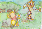 一番、瑠衣が楽しそうにしていたのが、巨大プーさんとの記念撮影(左画像)と筆を使った塗り絵コーナーでした。(中画像)