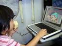 福山から浜松へ帰る新幹線の車中もパソコンを起動して過ごしました。メロンパンを食べながら旺文社の「まいにちがたからもの」で遊んでいます。