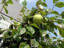 バス停の近くのりんごの木に青い実が実りました。秋になってきましたね。