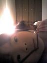 左図は文面の画像、右図はパパが寝付いたのにまだ眠らない瑠衣の様子です。