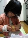 私が野菜を切っているときに、瑠衣には玉ねぎの皮をむかせました。玉ねぎ以外の食材を切り終えてもまだ皮を一生懸命むいていたので瑠衣に最後までむかせました。
