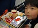 飛行機に乗り込むと、事前に予約していた「チャイルドミール(子供用機内食)」と記念品のディズニーキャラクターのリュックサックと絵本やシールをもらいました。機内では座席前に個々にモニター画面があり瑠衣は子供向けの映画を視たりして心配していたよりずっと大人しく過ごせました。