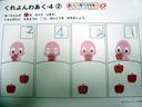 旺文社の「まいにちがたからもの」3月号年中コースの「くれよんわあく-4①②」をしました。①のほうは無難にこなしていました。②ができあがったというので確認すると、「おーちゃんがりんごをたべています。順番になるように□にばんごうをかきましょう」という問題文だったのですが、瑠衣は何をおもったのか(たぶん前回のワークがどんどん増える順番に選ぶワークだったためでしょう)、食べれば食べるほど絵りんごが増える順番に選んでいました。
