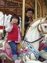 水族館を見た後は隣接する遊園地の観覧車とメリーゴーランドに乗り、南極観測船をバックに「タローとジロー像」撮影して帰ってきました。
