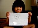 福山に到着後、瑠衣はおじいちゃんの顔をボールペンで描き始めました。