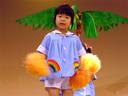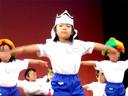 瑠衣は、2つクラス合同演目では「西遊記の三蔵法師」のかぶり物をして、「スマイリー」では先生手作りの衣裳とポンポンを持って演じました。
