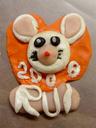 硬いブロック状の粘土を練って小さなネズミの作品を作りました。(あまりに硬い粘土で結局、パパと私も参加して家族3人の作品です)