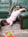 ソファーで寝ているうちに ドン と落ちた瑠衣。