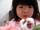 真剣に団子を食べています。