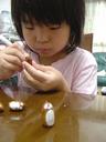 1)瑠衣が油粘土で「牛」を作り