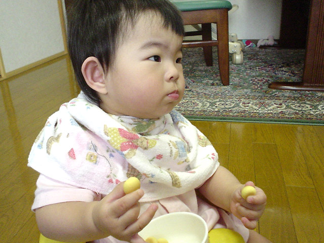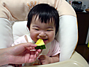 瑠衣はこのごろ軟らかいものならば大人の食べ物でも食べれるようになりました。