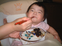今日の瑠衣は食欲旺盛でした。夕食にお粥と人参の煮付けと味噌汁を食べていたのに