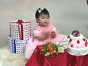 右の画像はすこし緊張気味に前向きに座っている瑠衣です。
