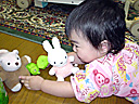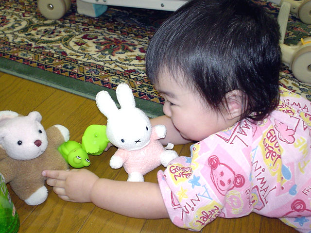 遊びが好きな様子です。ぬいぐるみの中でも「ミッフィー」と「ポコペン」を