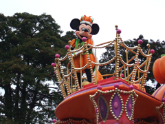 そして、パレードです。ハロウィーン用のパレードで、初めは場所取りができずよく見えない位置だったのですが、前にいた団体が突然パレードを見ることをやめて、近くでパレードを見ることができました。 しかも、瑠衣は、パレードのダンスに参加し、ダンサーのお姉さんのまねをして楽しむことができました。 (突然いなくなった団体さんに感謝!) |