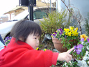 今日はお天気もよく、予防接種と散歩を兼ねてお出かけしました。 歩いて10分程度の遠州病院で風疹の予防接種をしました。ちょうど瑠衣より2ヶ月早生まれの 男の子がいて一緒に「キャッキャッ」言いながら走り回ったり、待合室にあった水槽の魚を 見ていました。同じくらいの大きさの子どもといると瑠衣もとても楽しそうです。 予防接種の注射は針を刺しても全然泣かないで「イェーイ!イェーイ!」と小児科医や看護士に 話しかけていました。さらに男の子が注射の後、泣いて診察室から出てくるととても楽しそうに 声を出して笑うので、ほんとに参ってしまいました。 瑠衣はあまり注射の針の痛みを泣いて発散するタイプではないようです。むしろ「なにしてる?」 という疑問が大きいようで泣いたりしないのかな? 左の画像は予防接種の後、帰り道で花壇を見つけたので撮影しました。
