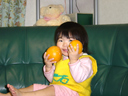 瑠衣はみかんなどの柑橘類が好きです。 今日はキッチンからハッサクを持ってきてむいてくれるように要求してきました。 左の画像は両手にハッサクを持っています。 ハッサクは伊平のおじいちゃんが作ったものです。