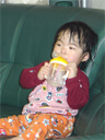 今まで、パパとママは「瑠衣はミルクのメーカーにこだわりは無く、どこのメーカーでも 飲んでくれる」と思っていました。いつもはアイクレオというメーカーの「モモ」という ミルクと飲んでいたのですが、今回少しお買い得な「明治のステップ」をあたえたところ どうも嫌いなようでしぶしぶ飲んでいます。今度からはお気に入りの「モモ」にしようね。