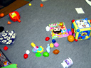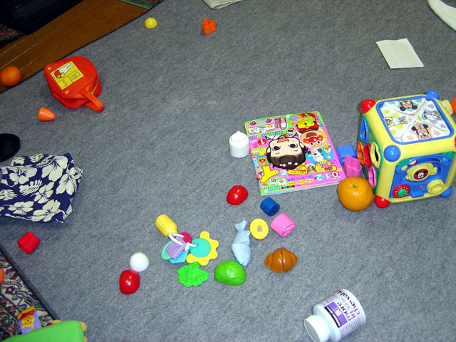 瑠衣が寝た後のリビングの様子です。 おもちゃであふれています。