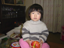 お行儀が悪いのですが、コタツの天板の上によく乗っています。 どうやらテレビを見るのにちょうどよい高さのようです。お気に入りの英語の教材ビデオを 見ながら、「あっぷる」と言ってりんごを得意げに持っています。