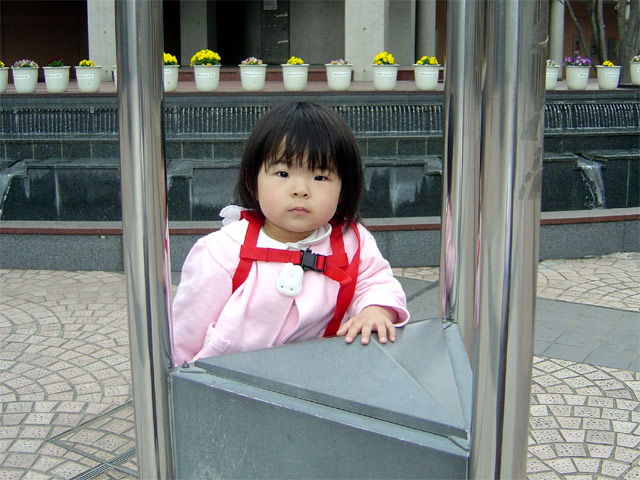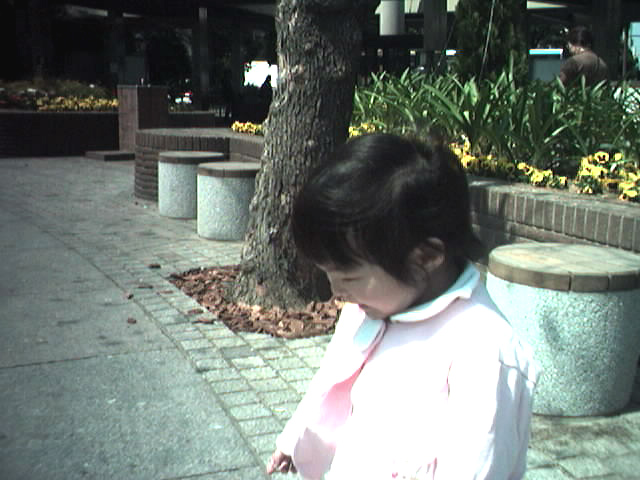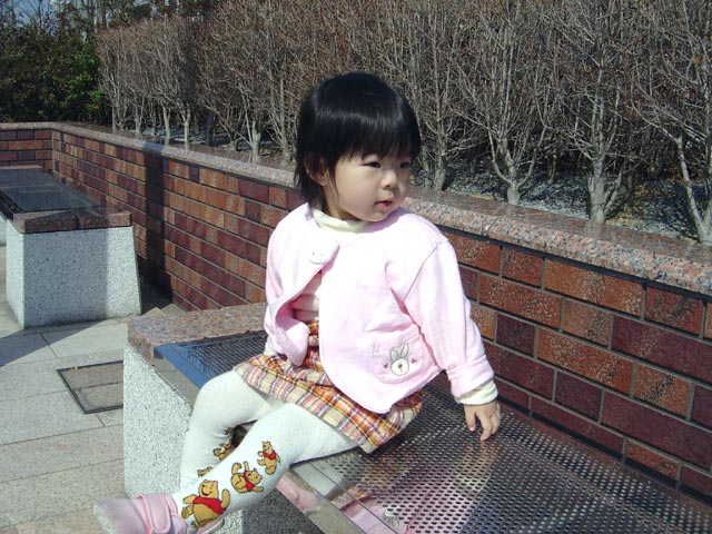バス乗り場で撮影。小型カメラで撮影したのでうまく撮影できませんでしたが 瑠衣は鳩をみて追い掛け回していました。「鳥インフルエンザ」が懸念されて いるので瑠衣が鳩に興味を持ったのは少し嫌な感じがしましたが、瑠衣の追い掛ける 速度よりも鳩のほうがずいぶん逃げ足が速く、杞憂に終わりました。 瑠衣は「ぽっぽっーまてぃー」と叫んでいました。(周りから笑われていました)