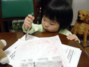 らくがきをしています。 本人は「おぅー」とか「きゅー」とか、つぶやきながらボールペンを動かしています。 「O」や「Q」に見えなくも無いのですが・・・。