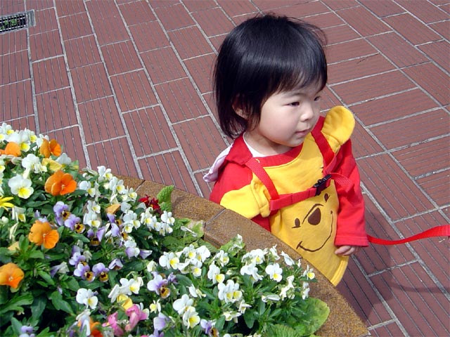 バスでママとお出かけしました。 浜松駅のバスターミナルの花壇で撮影(小型カメラのため画質が悪いです) 花博(花の博覧会)が開催されていて駅周辺もお花がいっぱいでした。 瑠衣は「きれーねぇー」と花を見てはしゃべっていました。
