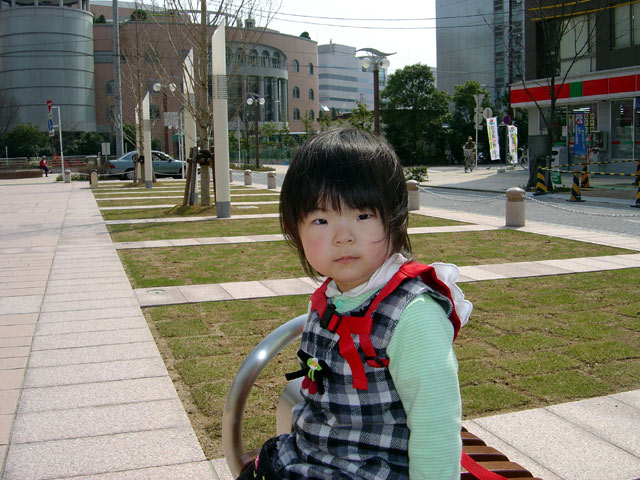 浜松駅の駅ビルに買い物に行きました。 瑠衣も歩いて買い物に行ったのですが、すこし疲れたようです。 左の画像は、アクトタワーの広場で撮影しました。