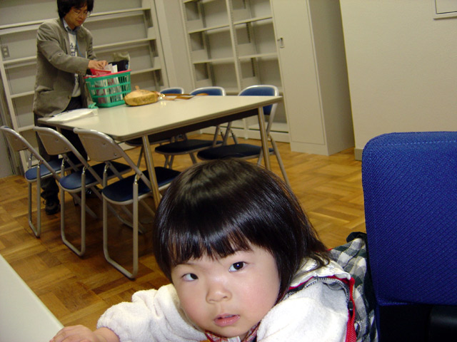 パパの研究室が新しくなったので瑠衣とママは様子を見せてもらいました。 まだ何も無いのでガランとしています。 瑠衣は備品をチェックするように触っていました。