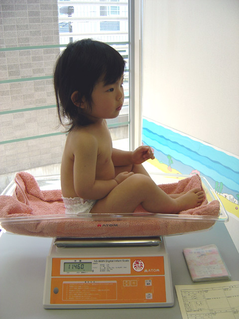 1日遅れましたが、2歳の身体測定に行ってきました。 今回の担当の保育士さんは、赤ちゃん用の座って計測する体重計を使用しました。 体重:11.46kg 身長:87.4cm 1ヶ月で2.4cm身長が伸びて体重はほぼ同じでした。