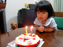 いよいよ1日遅れでバースデーパーティをしました。 瑠衣はイチゴのケーキが気に入ったようで「すとーろべりー」と英語でイチゴを指差し ていました。蝋燭に火を灯してフーっと吹き消すのも上手にできました。 この様子は近日中に、動画にしてビデオギャラリーに載せます。