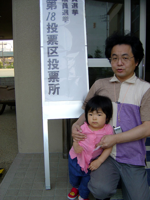 参議院選挙の投票に行きました。 投票所の係員さんの後ろに回ってみたりして、選挙妨害をしていました。