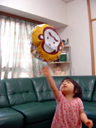 夏風邪を引いてしまって痰がからんでいたのですが、 今日はずいぶん元気になって風船で遊んでいます。 この風船は元々はヘリウム入りの風船で1週間前に電気屋さんからもらいました。