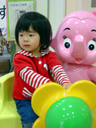 「浜松こども館」の帰りには、お決まりのコースがあります。 それは、「浜松こども館」の1階にある調剤薬局の「サトちゃん人形」に乗車する ことです。 これは、瑠衣にとっては、「こども館の帰り=サトちゃん」というようにすり込まれて いるようです。