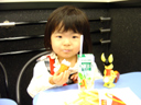 マクドナルドへパパとママと瑠衣の3人で食事に行きました。 瑠衣はとても辛い「チリソース」が気に入ってしまって、 「はー」と言いながら何度もポテトをつけていました。