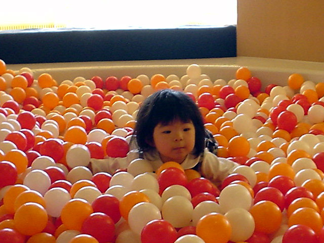 「浜松こども館」の「リズムでトン・パ♪」というリズム体操教室に参加しました。 この様子はビデオで撮影しました。 とても元気よく、飛んだり跳ねたりできました。 左の画像は、教室の後、「ボールプール」で遊んでいる様子です。(おなじみの)