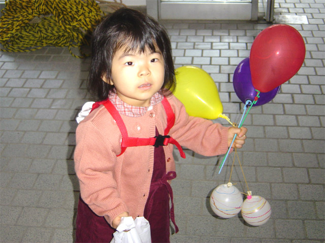 パパとママの勤めている大学での学園祭に行きました。 瑠衣は、学生さんたちから風船や水風船をたくさんいただきました。