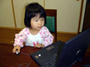 インフルエンザの予防接種2回目をしました。季節柄、予防接種を受ける子供が多くいました。 そのうちの一人に幼稚園児(男の子)がいて瑠衣に興味があるのか、体当たりをしてきました。 瑠衣はとても怒って「いや!もー」と逃げて手を振り払うとその子はますます瑠衣に挑戦的に なるので困ってしまいました。私が「だめよ」と男の子を注意すると男の子の保護者が 「すみません」と謝り、「ごめんなさいといいなさい」と言ったのですが、効き目なし。 結局、瑠衣とママは場所を移動しました。困ったチャンも居るものです。 そんなこんなで家に帰ってパソコンをしている様子です。20日に購入したソフトで遊んでいます。