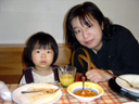 湖が見える「イタリアンレストラン」へ行きました。 瑠衣は、「バイキング形式のおかず」やパパの注文した「トマト味のスパゲティ」を いっぱい食べました。ジュースも2杯も飲みました。 2歳児は無料でジュースやおかずを食べられるのでとてもうれしいレストランです。