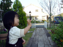 「イタリアンレストラン」の庭で撮影しました。 庭でも食事をすることができ、ちょうどこの日は犬を連れたお客さんがいっぱい 来ていました。 瑠衣は犬に興味津々!手を振っています。