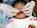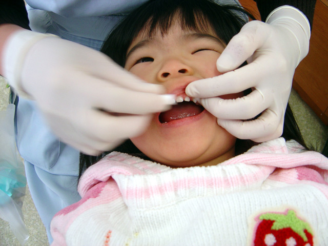 浜松市歯科医師会でのフッ素塗布に行ってきました。 半年間隔で塗布を行っていて今回は3回目です。 今回はパパも一緒に来てくれたのでデジカメで撮影をしました。 前回、前々回はおとなしく塗布ができたのですが、 今回はフッ素を味わってしまったようで大暴れしてしまいました。 ママは瑠衣を診察台で押さえ込み、技師さんは無理やり口をこじ開けて 塗布が完了しました。 歯科検診の結果は、虫歯はなし、乳歯はあと1本で全部揃う状態です。