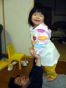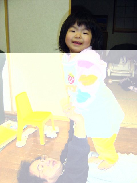 パパがリビングで寝転んでいると、「ぴょんぴょんぴょーん」と 瑠衣がパパのお腹に乗ってきました。 とても苦しそうなパパです。ママの上には乗らないでね・・・。